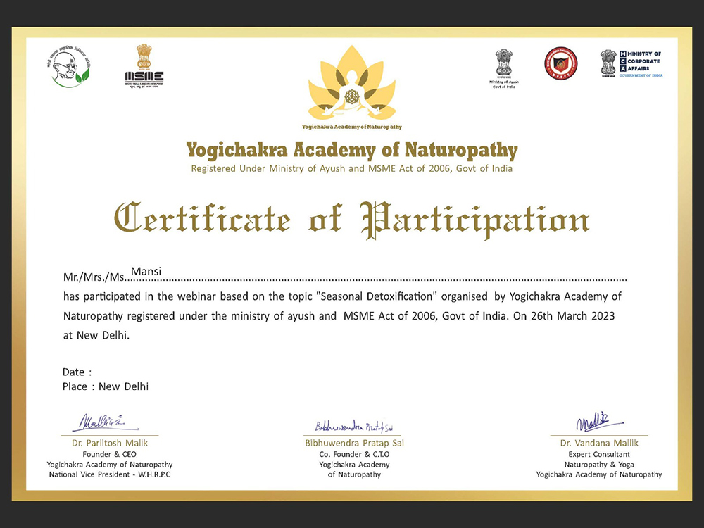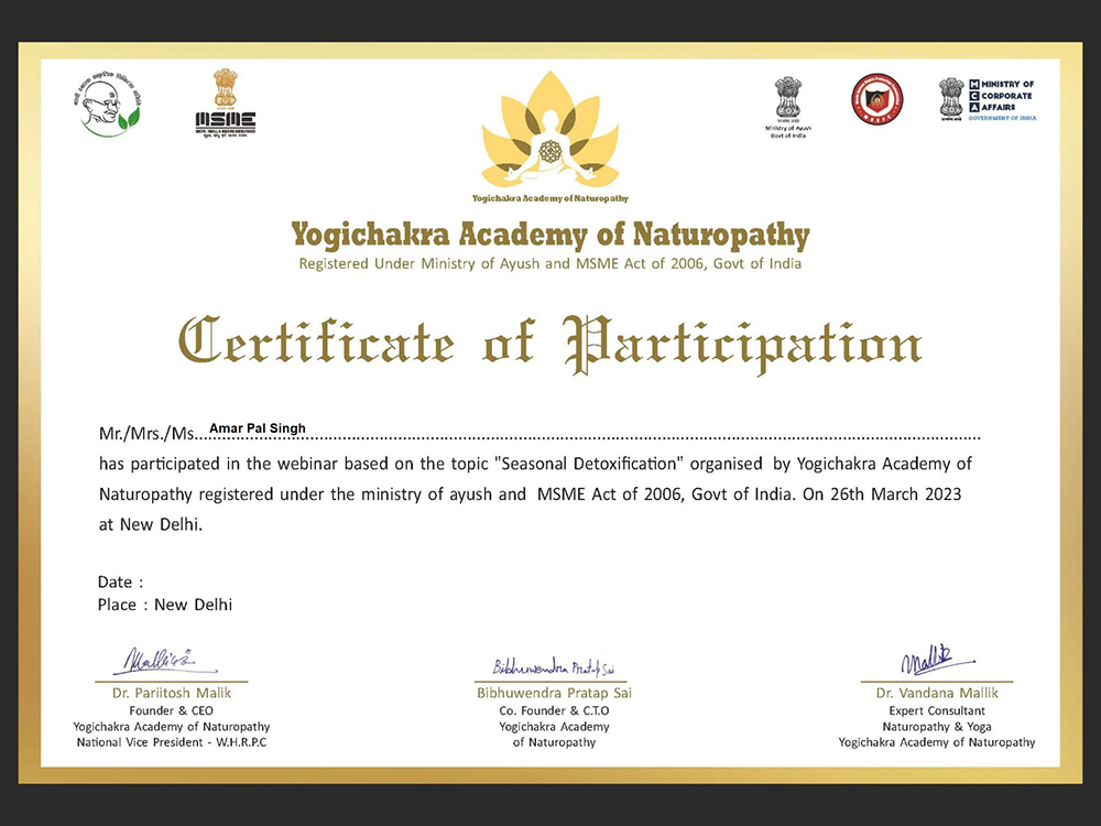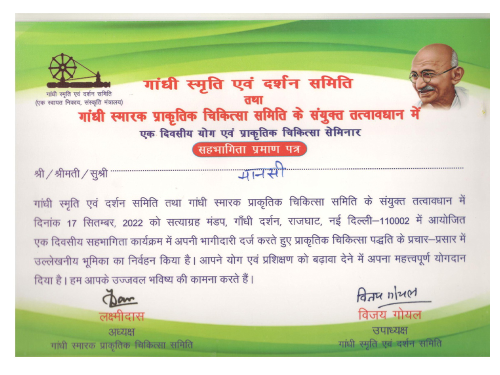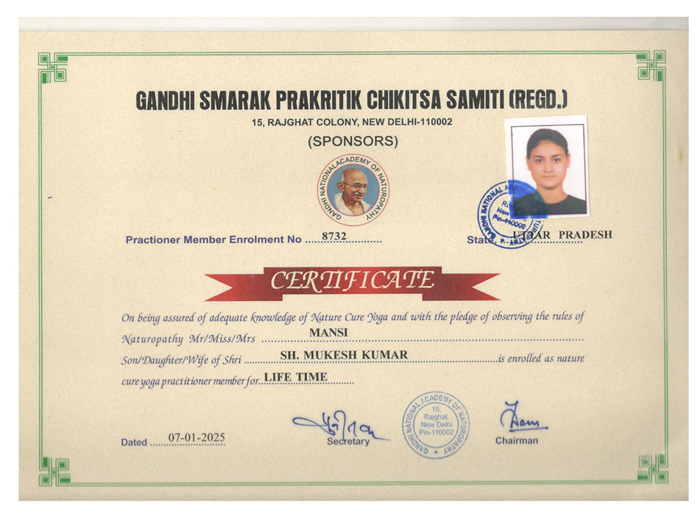 3. Done Diploma Naturopathy and Yoga Science from Ghandi Smarak Prakritik Chikitsa Samiti
